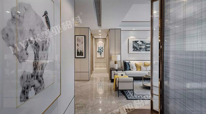 優(yōu)雅的純色墻面與純白天花板攜手,在居家空間演繹著都市時尚與奢華品味,無形中醞釀優(yōu)雅氣質(zhì),為空間增添優(yōu)雅大氣感,高貴而低調(diào)。